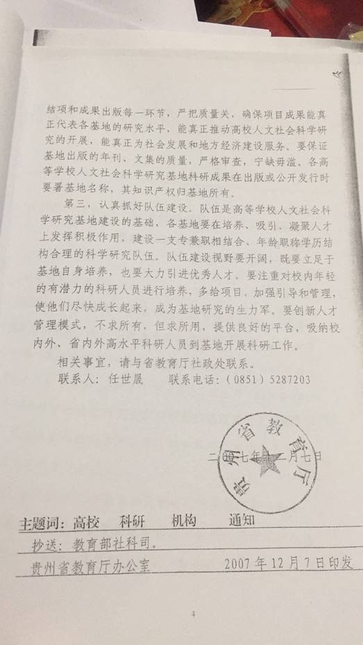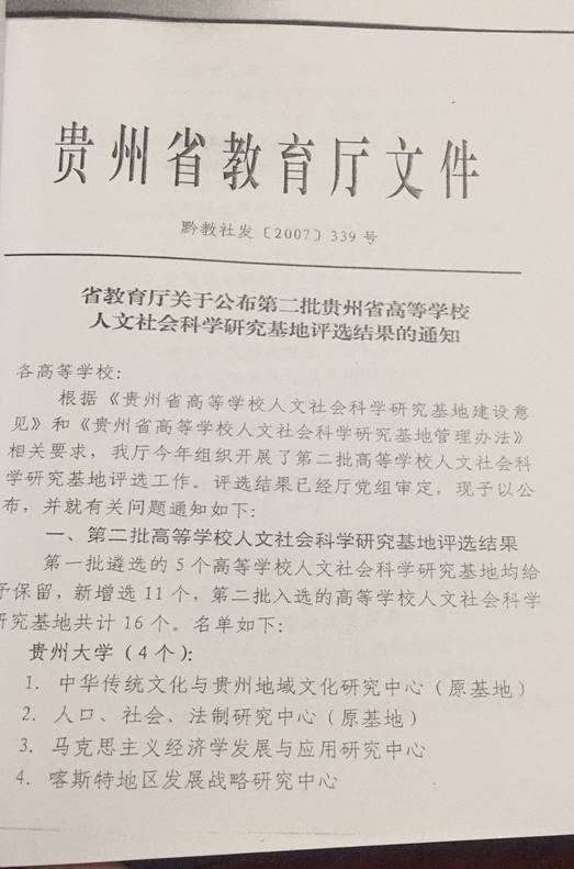 省教育厅关于公布第二批贵州省高等公司人文社会科学研究基地评选结果的通知