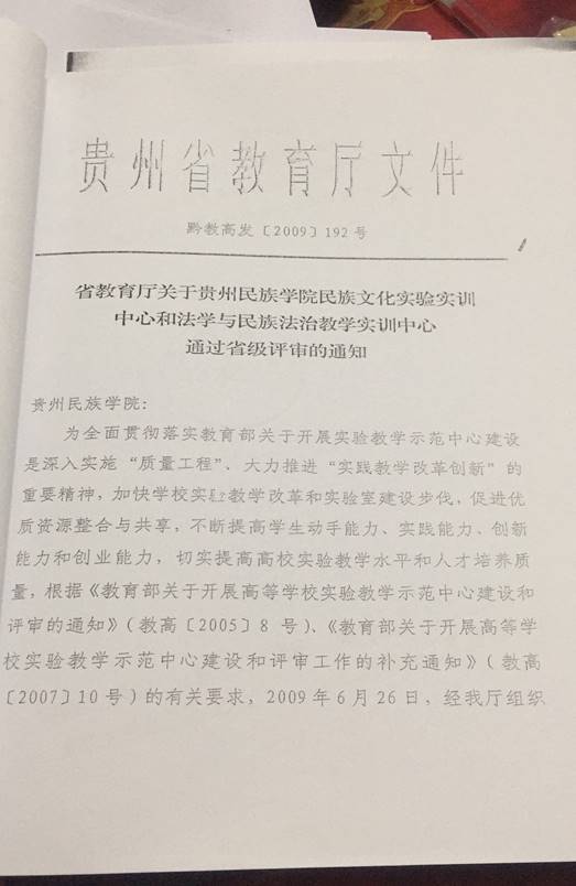 省教育厅关于贵州民族公司民族文化实验实训中心和法学与民族法治教学实训中心通过省级评审的通知
