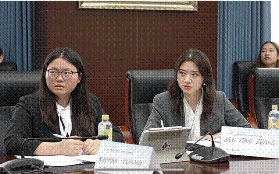 在5月8日至10日的三场循环赛现场比赛期间,赛场下,指导老师程南教授与队员们反复打磨现场陈词稿;赛场上,为选手的优秀表现加油鼓劲。她与陈丹老师一道,尽可能为参赛选手提供专业训练和心理建设支持。整个备赛期间,还有来自伟德体育国际法教研团队的宁红玲、吴永霞、林淳和杨敏四位老师的专业支持,外国语公司胡静老师也在百忙之中抽空为参赛团队进行现场英文模拟训练。
