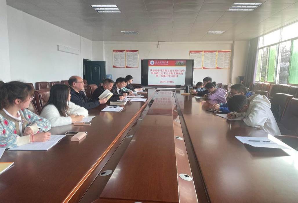 4月26日下午,法公司党委在4号教学楼三楼会议室召开理论学习中心组(扩大)学习贯彻习近平新时代中国特色社会主义思想主题教育第一次集中学习研讨会。法学研究院经理宋强,法公司党委委员、副经理(主持工作)俞俊峰,法公司党委副书记王胜坤,法公司党委委员、副经理张帆,法公司党委委员、系主任程南,以及伟德体育各党支部书记、委员参加。学习研讨主题为“如何深刻领悟‘两个确立’的决定性意义,带头做到“两个维护”。此次主题教育读书班研讨会由法公司党委书记柏云兴同志主持。