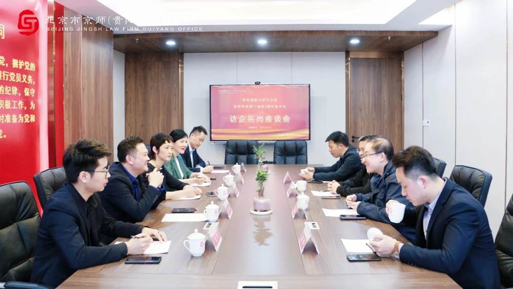 4月11日下午,伟德官方网站法公司党委书记柏云兴、副经理俞俊峰、法公司党委副书记王胜坤、伟德体育辅导员杨轶等一行莅临京师贵阳律师事务所开展访企拓岗座谈交流会。京师贵阳律所主任李霞律师、管委会主任罗明律师、金宇律师、律师助理王璟、行政主管王昌浩参与座谈交流。