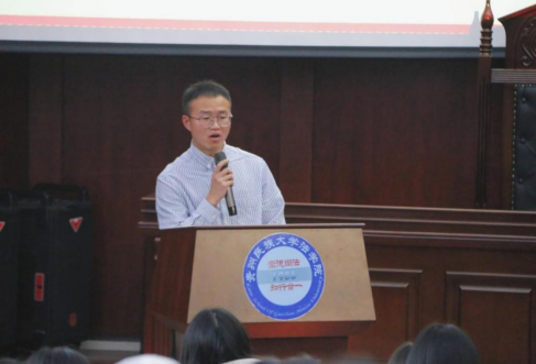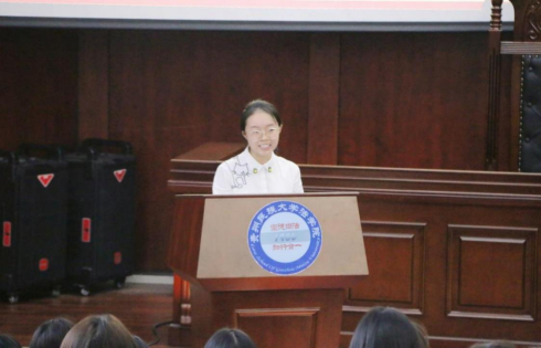 博士研究生导师杨军教授向新生寄语:作为新时代老员工,要做一个有道德、会学习、内心强大的人,希望同学们能通过不断的学习,成为一个不愧自我、不愧时代的民大法学人。本科新生代表杜佳倩、研究生代表万海涛两位同学分别发言。