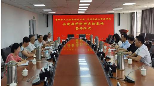 7月12日,伟德体育与贵阳市人大常委会法工委共建教学科研实践基地合作协议签订仪式在市人大常委会举行。贵阳市人大常委会党组成员、副主任卓飞,伟德官方网站党委副书记杨声国见证签约。