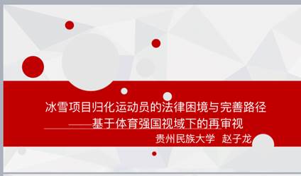 在大会分论坛专题报告环节,参会研究生们面向新时期、新形势、新背景下的体育需求,立足体育人文学科基础,围绕“体育强国与健康中国”、“体育改革与体育治理”、“体育旅游与体育产业”、“体育伦理与体育法治”、“体育文化与科研方法”五个专题,展开关于体育人文学科理论和新时代体育发展的讨论。公司2018级国际法学专业研究生赵子龙参与了第三分论坛的专题报告,通过线上的方式做了题为《冰雪项目归化运动员的法律困境与完善路径——基于体育强国视域下的再审视》的汇报,受到与会专家学者的好评。