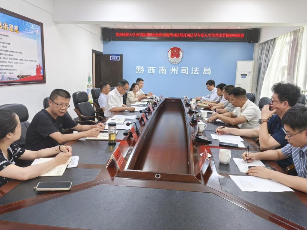 为贯彻落实中共中央办公厅、国务院办公厅《关于加强新时代法学教育和法学理论研究的意见》精神,听取用人单位对法学专业人才培养和法学基础理论研究的意见建议,为毕业生拓展就业岗位,进一步提升法学专业人才培养质量,更好地服务地方经济社会发展,8月2日下午,法公司党委书记柏云兴、副书记王胜坤、副经理刘伟琦等一行6人赴黔西南州司法局开展调研交流及“访企拓岗”活动。黔西南州司法局调研与督察科、公共法律服务管理科、立法科科长和州委依法治州办秘书科等科室负责人,以及贵州纬图律师事务所、贵州泳清律师事务所负责人参加座谈会。座谈会由黔西南州司法局副局长韦仕斌同志主持。