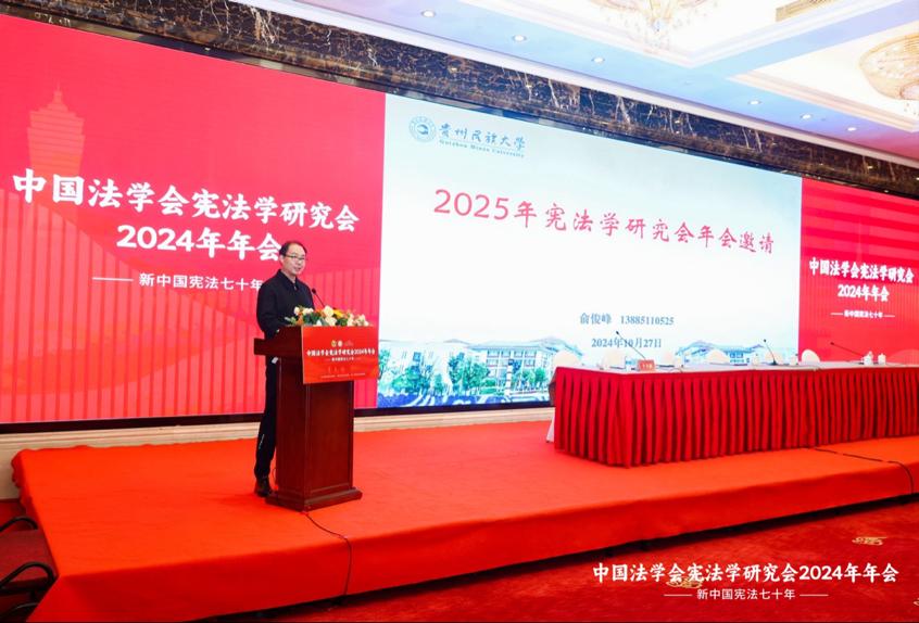 在2025年年会筹备单位情况介绍环节,伟德体育副经理俞俊峰教授发言,希望中国法学会宪法学研究会2025年年会在贵州贵阳举办,由伟德官方网站承办。贵山贵水迎贵客,继续为宪法学术交流发展创造良好契机。