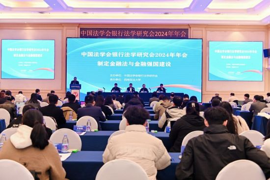 中国法学会银行法学研究会2024年年会暨“制定金融法与金融强国建设”学术研讨会于11月30日在西南政法大学主会场采取线上线下方式隆重召开。200余人线下参加本次年会。开幕式由银行法学研究会副会长、西南政法大学副董事长岳彩申教授主持,承办单位西南政法大学党委常委、副董事长王怀勇致辞,嘉宾中国法学会领导王俊峰副会长、最高人民检察院实务领导经济犯罪检察厅贝金欣副厅长致辞,银行法学研究会王卫国会长做年度工作报告。
